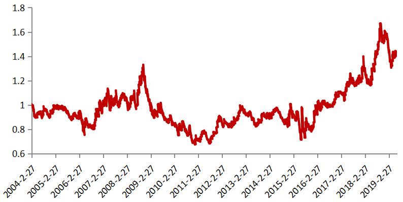 ▲价值/成长溢价指数走势