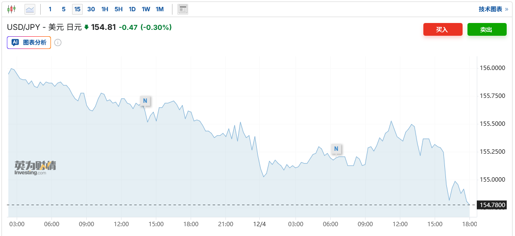 据知情人士透露,若日本央行决定在12月加息,高市早苗政府的主要官员不会试图阻止,尽管一些高级官员反对这一加息时机。在市场对日本央行将于12月19日政策会议上加息25个基点的预期日益升温之际,日本政府的这一立场增加了该国央行在本月加息的可能性。截至发稿,美元兑日元汇率下跌,至1美元兑154.81日元。日本两年期国债收益率则涨至1.022%。
