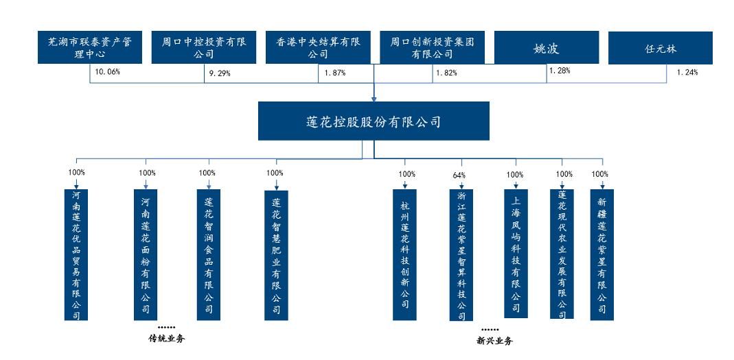 公司股权结构稳定,实控人产业背景深厚。董事长李厚文深耕资产管理多年,旗下国厚资产是安徽首家、国内首批持牌地方AMC;主营金融不良资产收购处置、上市公司重整、困境企业盘活;李总入主积极推动公司实现战略转型,从单一味精业务向“健康食品+科技”拓展。截至2025一季报,企业第一大股东为芜湖市莲泰资产管理中心,李厚文持有莲泰投资20%股权,为该公司的执行事务合伙人,同时也是莲花控股股份有限公司的实际控制人。周口中控投资有限公司与香港中央结算有限公司分别占比9.29%、1.87%。我们认为李总因为前期接触过很多不同资产公司,有着丰富的经验,目前在算力大发展时代,稳莲花主体,坚定发展算力相关科技转型业务,莲花未来或许大有可为。