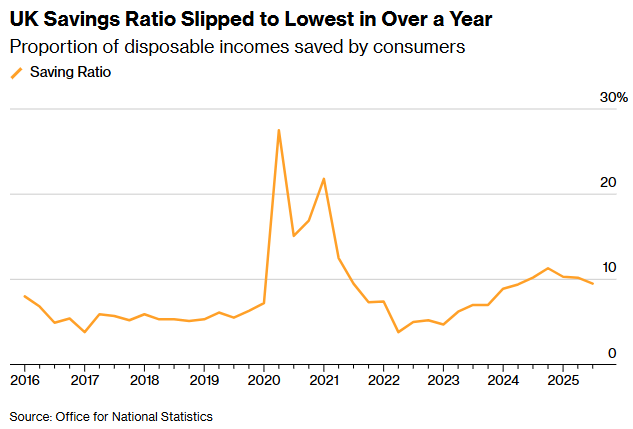 增税挤压下英国家庭储蓄率跌破10% 消费者紧缩开支拖累经济复苏