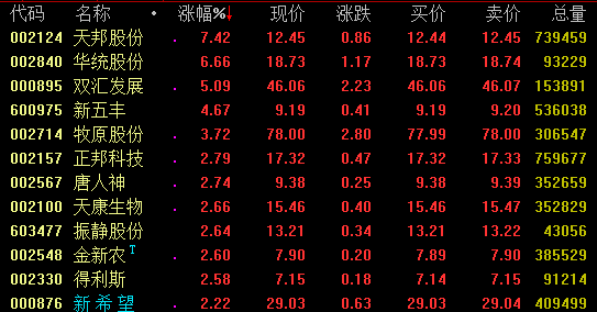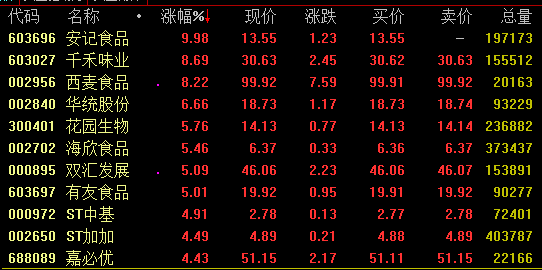 此外,猪肉概念亦走强,截至发稿,天邦股份、华统股份涨约7%,双汇发展、新五丰涨约5%,牧原股份涨近4%。
