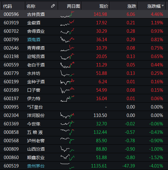 在市场层面,茅台此次业绩预告,并未大幅影响其它白酒公司,1月2日早盘,A股19家白酒公司11家录得上涨,其余下跌的白酒公司跌幅也均小于2%,只有贵州茅台跌幅最大。