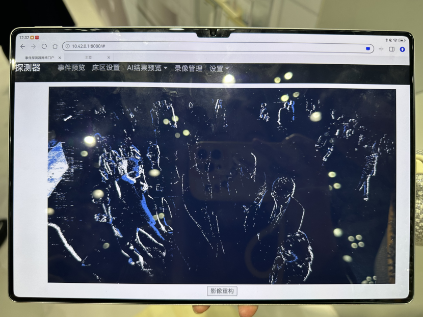 在索尼展台的现场,记者通过采访并体验CERVEAU EVS跌倒监测相机了解到,相较于市面上比较主流的毫米波雷达和火柴人摄像头技术,这款产品只拍摄光的变化,通过每个区块每秒达上万次的检测来聚焦于动作的变化,以达到保护隐私的目的,可用于浴室等私人空间。