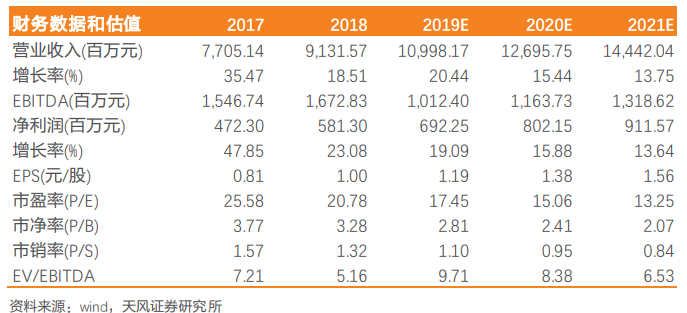 公司是企业网络设备龙头之一,去IOE和进口替代逻辑仍在持续强化,并且未来将大幅受益网络云化/边缘计算的建设。公司各业务线条增长态势良好,同时开拓新市场,业务结构不断优化,盈利能力有望持续提升。预计公司2019-2021年净利润为6.92亿、8.02亿和9.12亿元,对应19年17倍PE,重申“增持”评级。