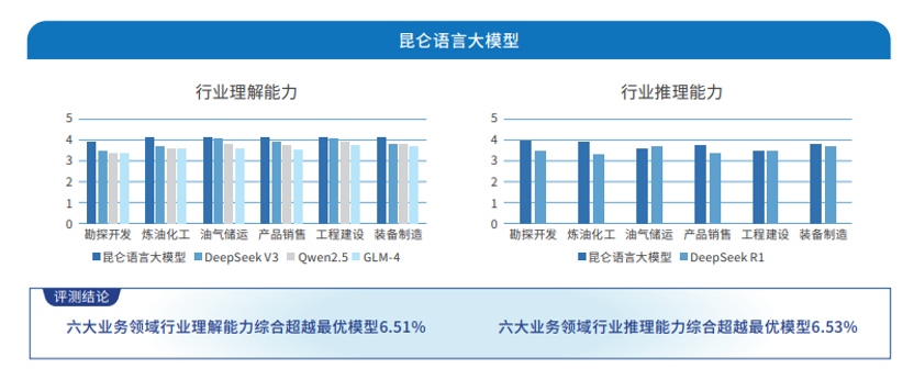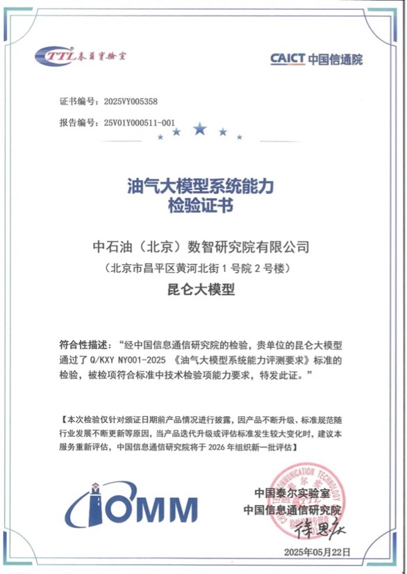2025年5月底,昆仑大模型正式通过中国信通院油气大模型系统能力评测,凭借在能源化工行业知识理解与推理、视觉分析理解、化学方程式识别分析等方面的深度优化能力成功通过专业测试,在多项关键指标上表现优异,尤其是科大讯飞承建的语言模型在行业理解与行业推理能力上的综合精度,分别超出国内主流通用大模型6.51%和6.53%,成为能源行业大模型落地的技术标杆。