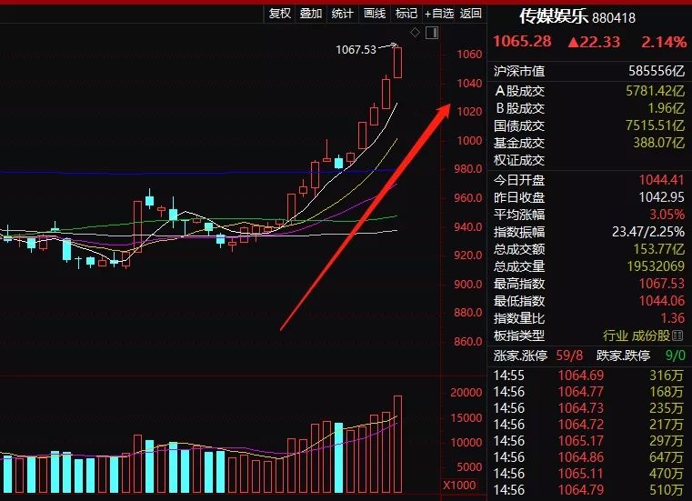 从12月初影视传媒股开始启动,本轮上涨这一板块的市值猛增约700亿元,从5498.95亿元增至6198.7亿元。