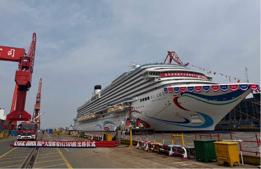中国船舶旗下外高桥造船“爱达•花城号”出坞仪式现场