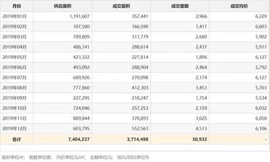 二是房价走势温和,其中在2019年年初市场淡季的时候,1-2月份的房价分别为6229和6603元/平方米,而到了第四季度,房价反而比较低迷,10-12月份的房价分别为6032、6058和6106元/平方米。