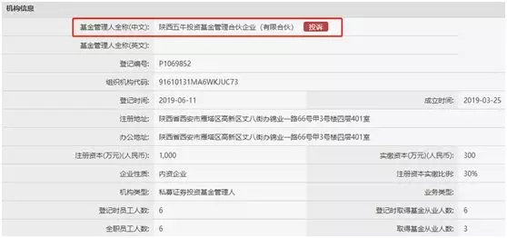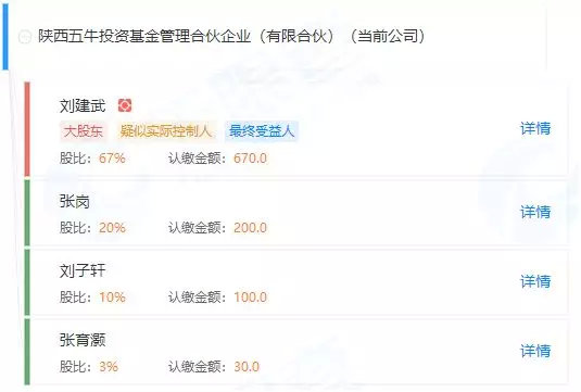 旋即到今年3月25日,刘建武就创立了陕西五牛投资基金管理合伙企业(有限合伙),并在6月11日完成私募管理人登记,正式踏入私募基金行业。公司注册资本为1000万,实缴比例30%,公司目前全职员工有6人。