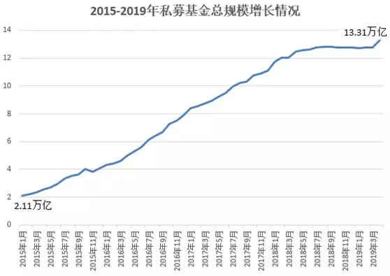 基金君统计了从2015年1月至今私募行业可以考察的备案登记数据,彼时是2.11万亿元,通过4年多时间实现快速增长,不断突破新的高峰,如今达到13万亿。