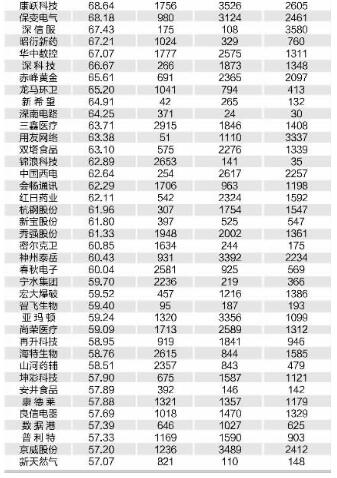 牛股100强中,每只股票都有机构持仓,机构持仓占流通股的比例高低差距悬殊,最低的不到1%,最高的超过88%。在牛股100强中,机构持仓的中位数为28.71%。