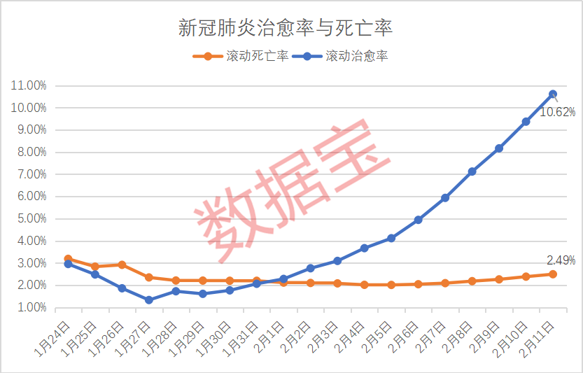 关于疫情的好消息也不断传来。2月11日全国新增治愈出院患者744人,累计治愈出院4740人,滚动治愈率达10.62%,首次突破10%大关。湖北省累计治愈出院2639例,治愈率7.9%,同样创疫情爆发以来新高。