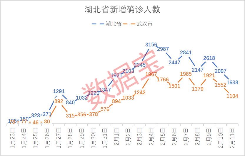 2月11日,湖北省累计新增确诊病例1638例,环比减少22%,新增确诊人数近10日内首次降至2000例以下,创2月以来新低。武汉市新增确诊病例1104例,环比减少29%,新增确诊人数连续两日下滑,创近9日新低。