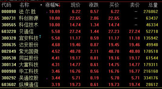 5G概念股31日盘中震荡上扬,截至发稿,法尔胜(000890)、科创新源(300731)、科信技术(300565)等涨停,贝通信(603220)、宜安科技(300328)涨幅超5%,达安股份(300635)、紫光国微(002049)、同益股份(300538)、大富科技(300134)等涨幅超4%。