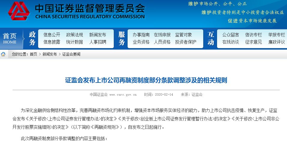 再融资规则正式发布。