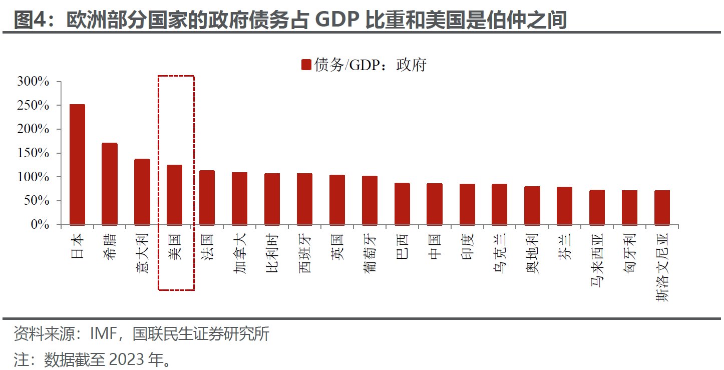 至于欧洲央行,当前市场预期的可能是最好的情形:例如预期明年欧洲财政发力顺利、俄乌局势缓和以及欧洲央行货币政策将按兵不动。其次还是绕不开财政问题。欧洲并不仅仅只有德国,其他大国比如法国和意大利,政府债务占GDP的比重和美国也是伯仲之间。因此,该行预计在欧元区诸国中,可能只有德国财政扩张明显,但法国、意大利等高债务国家仍将继续推行中性甚至偏紧的财政政策。