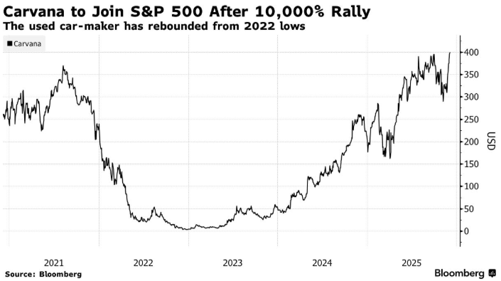 分析预测指出,Carvana、CRH水泥和美国舒适系统是值得纳入的优质候选企业。在周五的公告发布后,Carvana有助于实现行业多元化,并符合纳入标准。该公司股价今年迄今已上涨近 100%。