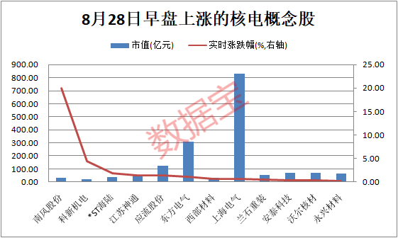 科新机电早盘股价上涨4.55%,上半年净利润同比翻倍;江苏神通、东方电气、应流股份等早盘涨幅均超过1%。与此同时,中广核技股价逼近跌停,盾安环境、中国核建跌幅均超过2.5%。