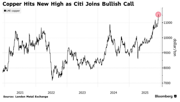 涨势如虹!铜价延续破纪录涨势 花旗加入看涨阵营