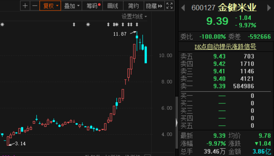 此前,由于新冠肺炎疫情在全球蔓延,出于保证国内粮食安全的考虑,多国采取禁止粮食出口的措施。在涨价的预期下,农业股大幅上涨,龙头金健米业一度11交易日9涨停。