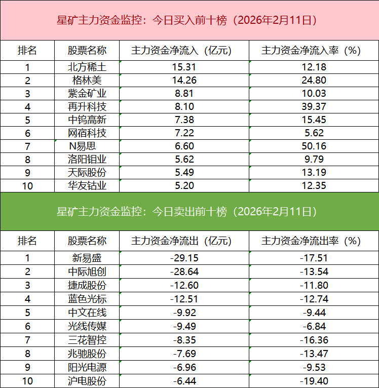 主力资金流出前十的个股以算力硬件方向为主,新易盛净流出居首。