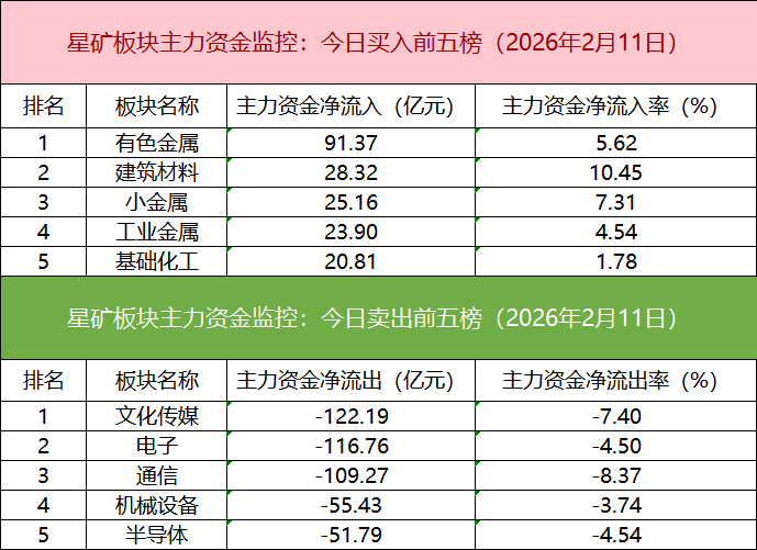 从主力板块资金监控数据来看,有色金属板块主力资金净流入居首。