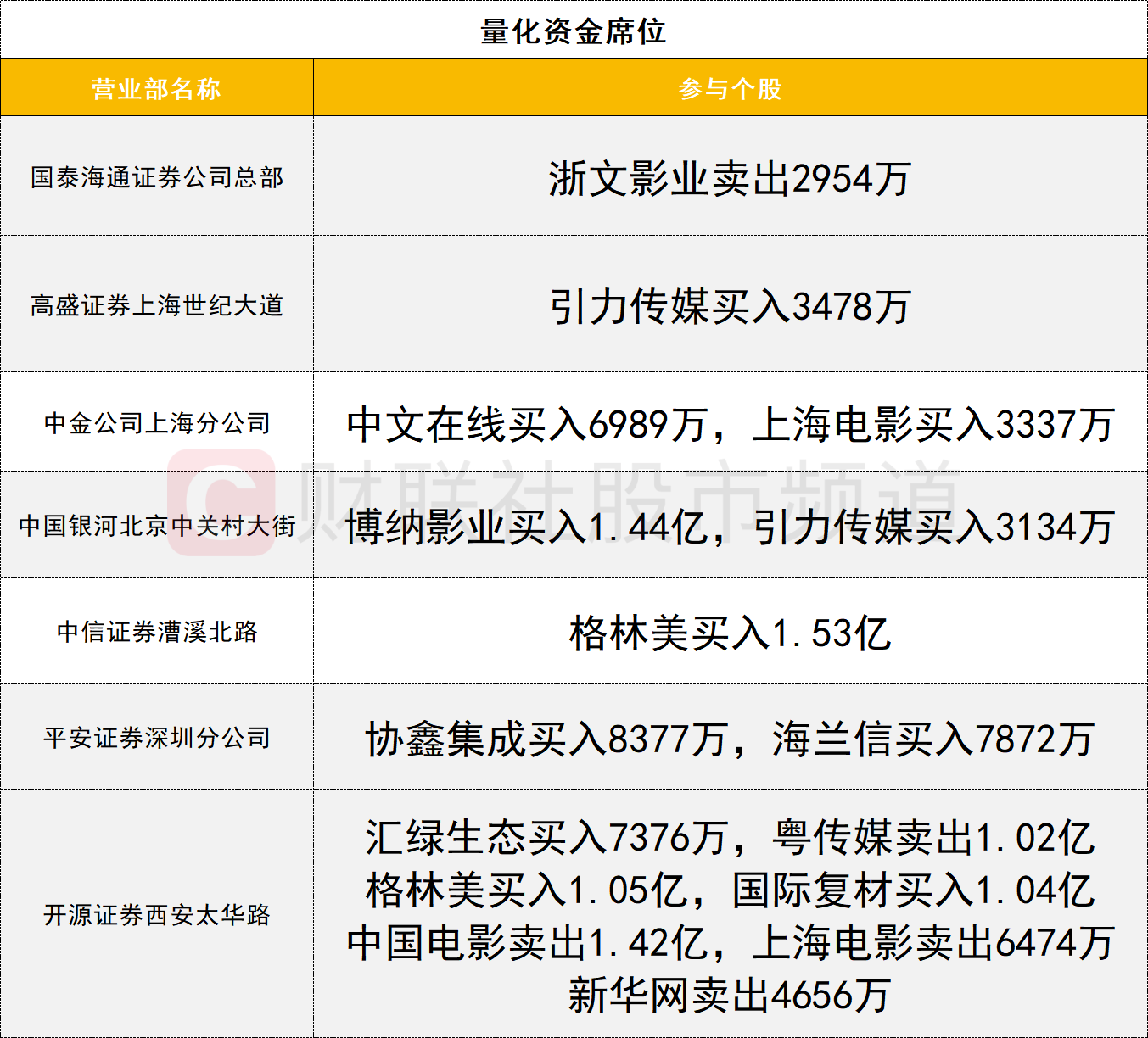 量化资金活跃度一般,玻纤概念股国际复材获一家量化资金(开源证券西安太华路)买入1.04亿。博纳影业今日冲板回落,一家量化资金(中国银河证券北京中关村大街)买入1.44亿。