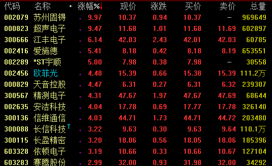 苹果概念股12日盘中震荡走高,截至发稿,苏州固碍涨停,超声电子涨逾9%,江丰电子、爱施德涨幅超5%,欧菲光、天音控股、精测电子、安洁科技、信维通信等涨幅超4%。