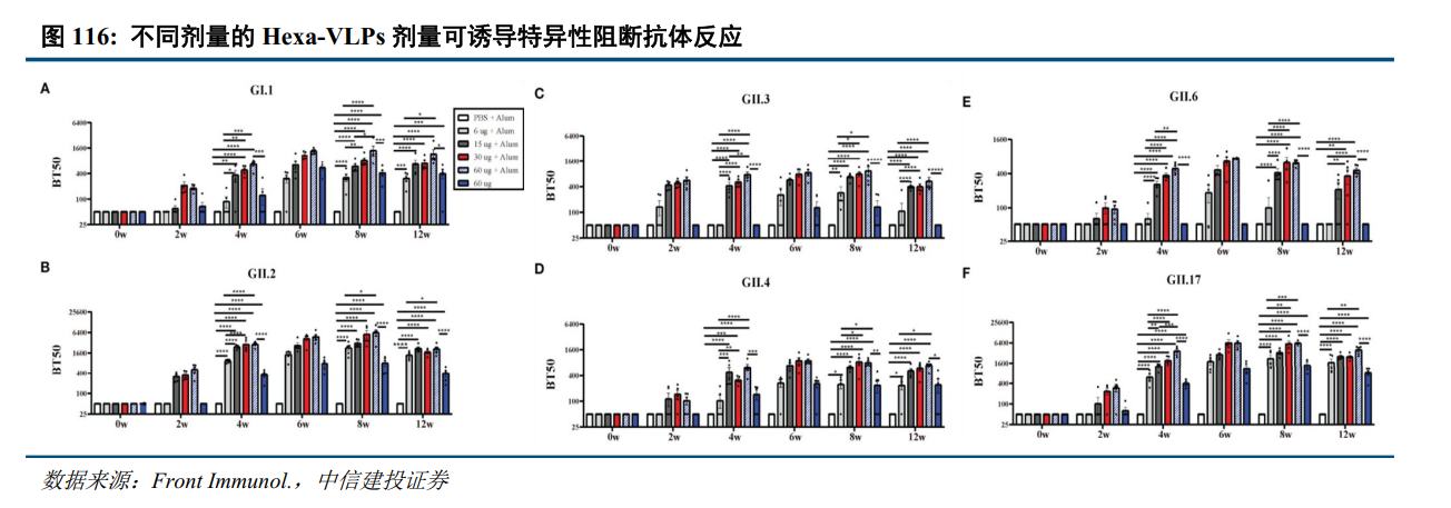 六价诺如病毒疫苗:目前全球最高价的在研管线,康华生物实现对外授权。康华生物自主研发了基于病毒样颗粒(VLP)的6价诺如病毒候选疫苗(Hexa-VLP),涵盖GI.1、GII.2、GII.3、GII.4、GII.6和GII.17基因型,佐用为氢氧化铝。临床前试验表明,接种2-3次Hexa-VLP可以诱导有效且持久的阻断抗体反应,尤其是对于新兴的GII.P16-GII.2和GII.17基因型。康华生物于2024年1月与 HilleVax 签署《独家许可协议》,授权 HilleVax 在除中国(含港澳台)以外地区对重组六价诺如病毒疫苗及其衍生物进行开发、生产与商业化,交易金额包括首付款1500万美元,最高2.555亿美元的开发里程碑和销售里程碑款项,以及实际年净销售额个位数百分比的特许权使用费。该管线已于2023年9月获得美国 FDA 临床试验许可,预计即将由合作方开启在美国的临床试验。