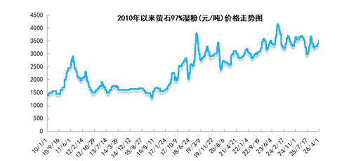 不过,进入今年二季度,沉寂多年的萤石出现复苏迹象,中小萤石企业纷纷上调萤石报价。生意社数据显示,江西德安实业有限公司、上饶恒通矿业有公司等矿企业,最新报价已为3500元—3600元/吨。