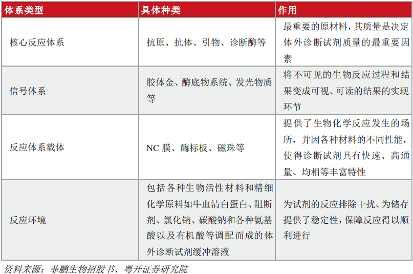 体外诊断的灵敏度、精密度及稳定性高度依赖于上游的抗原、抗体、酶、引物、探针、化学制品等核心原料的质量,上游核心原材料的价值约占体外诊断产品营业成本的60%-90%左右,核算最后实际价值的18%-30%。