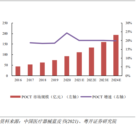 POCT领域代表未来发展方向,参考海外发达国家2020年29%占比(占体外诊断领域),国内POCT当前市场规模不足10%,具有较大的发展空间。