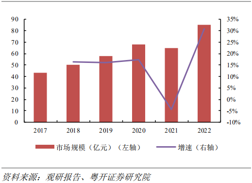 ②近5年行业年均复合增长率高达27.10%,约为全球市场增速的3.4倍;