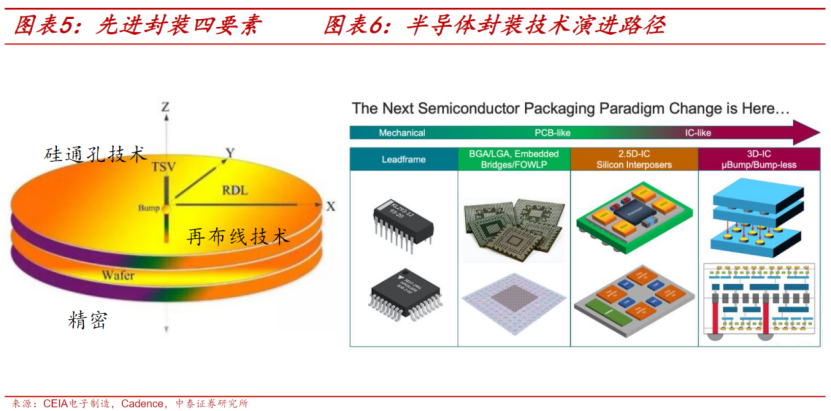 先进封装技术不仅可以提升功能、提高产品价值,还能有效降低成本,成为延续摩尔定律的重要路径。中泰证券冯胜在8月10日发布的研报中表示,先进封装对芯片进行封装级重构,并且能有效提系统高功能密度的封装技术。现阶段先进封装主要是指倒装焊、晶圆级封装、2.5D封装、3D封装(TSV)等。