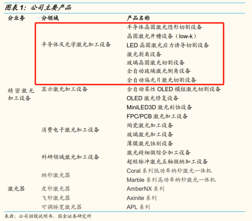 德龙激光为是精密激光加工设备龙头,主要业务为半导体激光设备、消费电子激光加工设备、面板激光设备、激光器等。公司产品包括半导体晶圆隐形切割设备、晶圆激光开槽设备(low-k)等;先进封装提升对半导体划片设备的需求,公司有望受益。