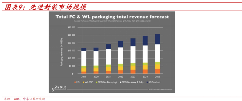 从晶圆数来看,根据Yole和集微咨询数据,2019年约2900万片晶圆采用先进封装,到2025年增长为4300万片,年均复合增速为7%。(折合成12寸)。