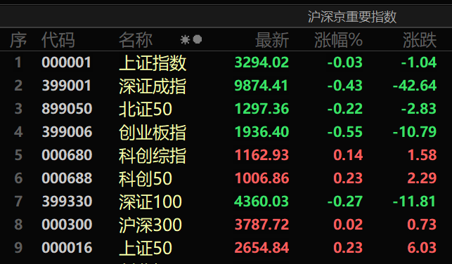 上证50、沪深300等微幅飘红,深证成指、创业板指等则微幅飘绿。下跌个股多于上涨个股,成交呈温和放大的趋势。