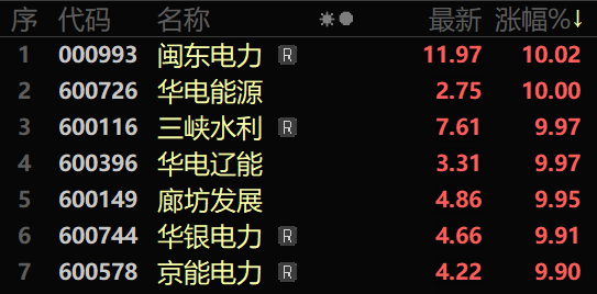 电力股全线走强