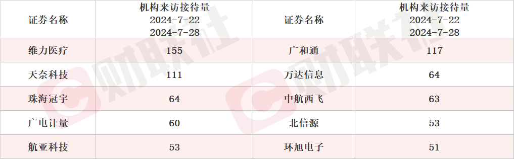 具体上市公司方面,据Choice数据统计,深南电路接受调研次数最多,达到4次。从机构来访接待量统计,本周有维力医疗、广和通和天奈科技3家公司接待百家以上机构调研,机构来访接待量分别达155家、117家和111家。