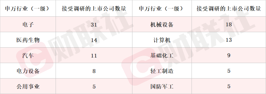 据Choice数据统计,截至上周日,沪深两市共162家上市公司接受机构调研。按行业划分,电子、机械设备和医药生物行业接受机构调研频度最高。此外,轻工制造、公用事业和国防军工等行业关注度有所提升。