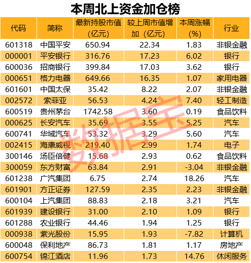 虽然A股整体赚钱效应差、北上资金本周整体连续净卖出,甚至不少大白马被大幅卖出,但大金融、汽车个股却被逆势大幅加仓。