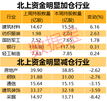 北上资金重点加仓建筑材料行业