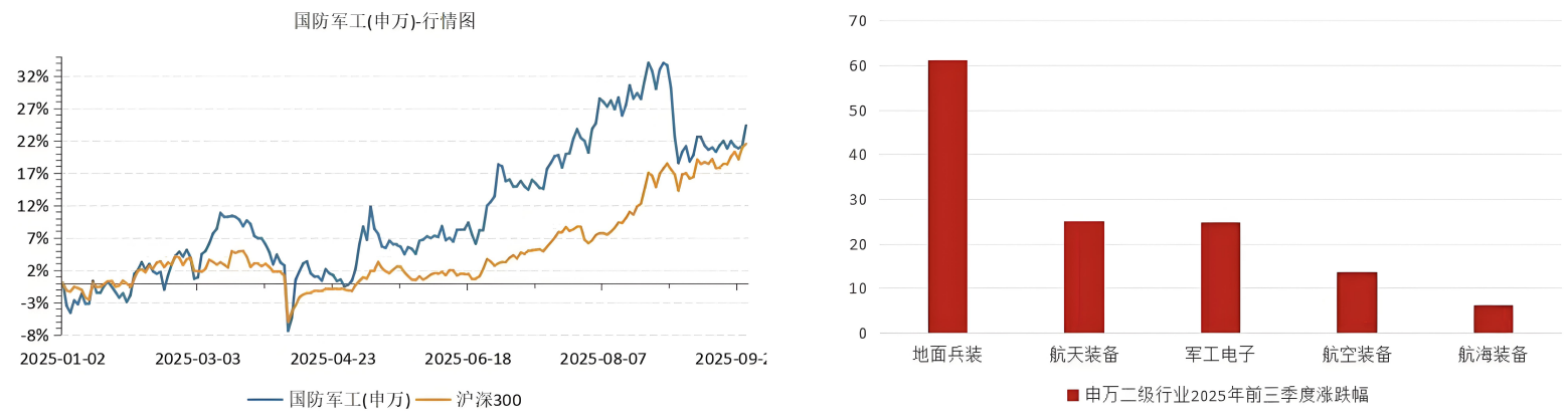 2025年,军工行业走势呈现“先扬后抑”的明显特征。在“93大阅兵”预期推动下,板块在9月3日前持续走强;阅兵结束后预期兑现,行业进入阶段性调整。年末阶段,在地缘紧张局势催化下,军工板块率先企稳,展现出较强的防御属性。