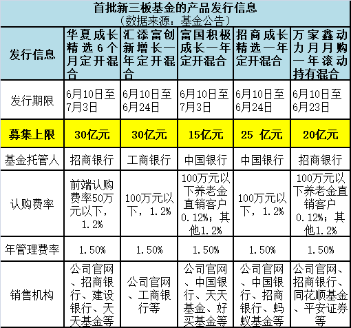 6月6日,首批可投新三板公募基金(以下简称“新三板基金”)的6只获批基金中,华夏、汇添富、富国、招商和万家基金旗下5只新三板基金,已经发布了招募说明书和基金份额发售公告。