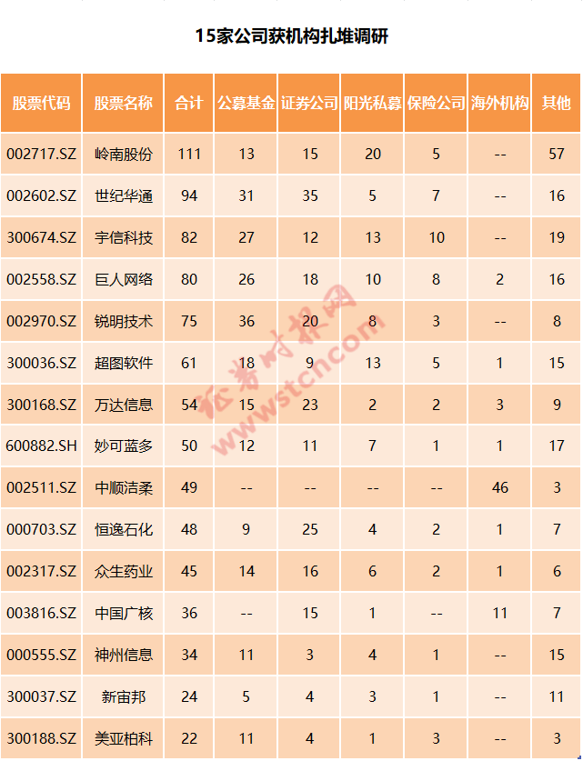 iFinD数据显示,个股方面,岭南股份累计接待机构达111家,位居首位;世纪华通累计接待94家机构,排名第二;宇信科技累计接待82家机构,排名第三。
