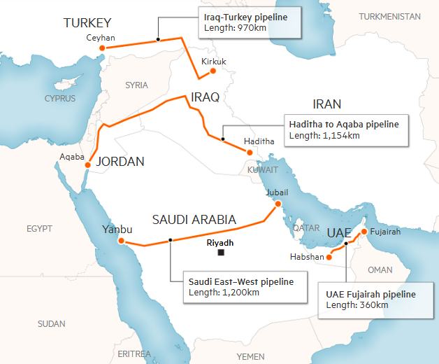 相关业内人士表示,在短期内,最可行的方案可能是扩建沙特东西管道以及阿布扎比现有的通往富查伊拉(Fujairah)港的路线。这将在不增加跨境基础设施复杂性的情况下提高产能。