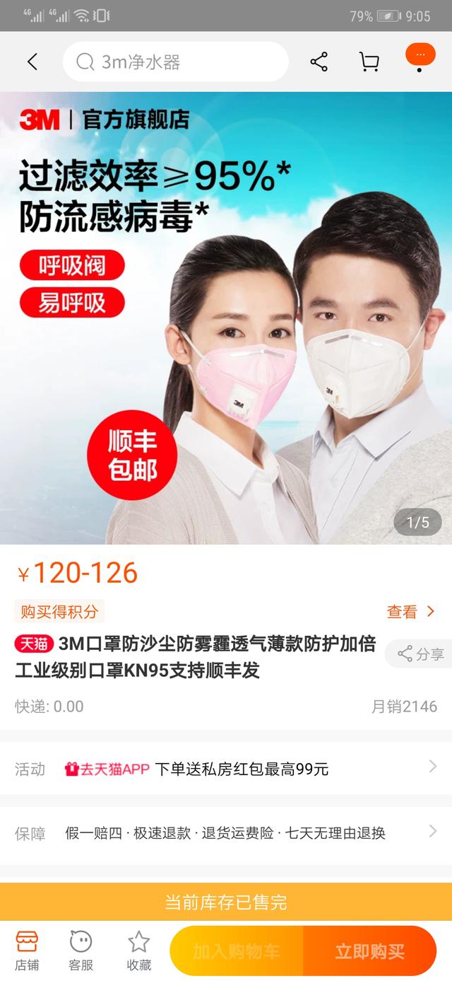 口罩热销:3M等品牌口罩的电商旗舰店多款产品卖断货