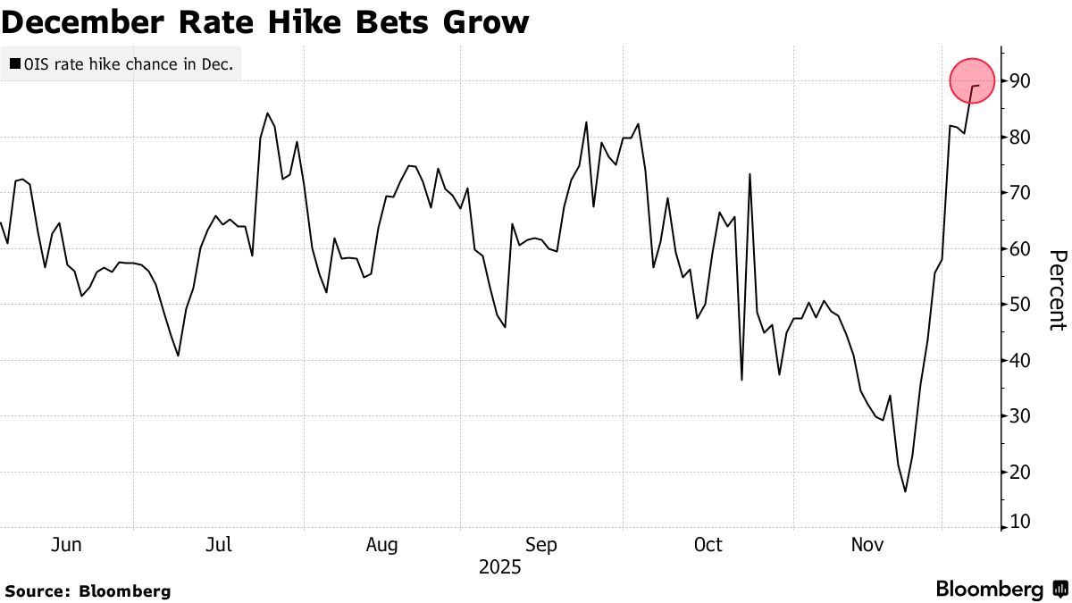 利率将奔30年新高!日本央行12月加息已就绪 日元应声走强