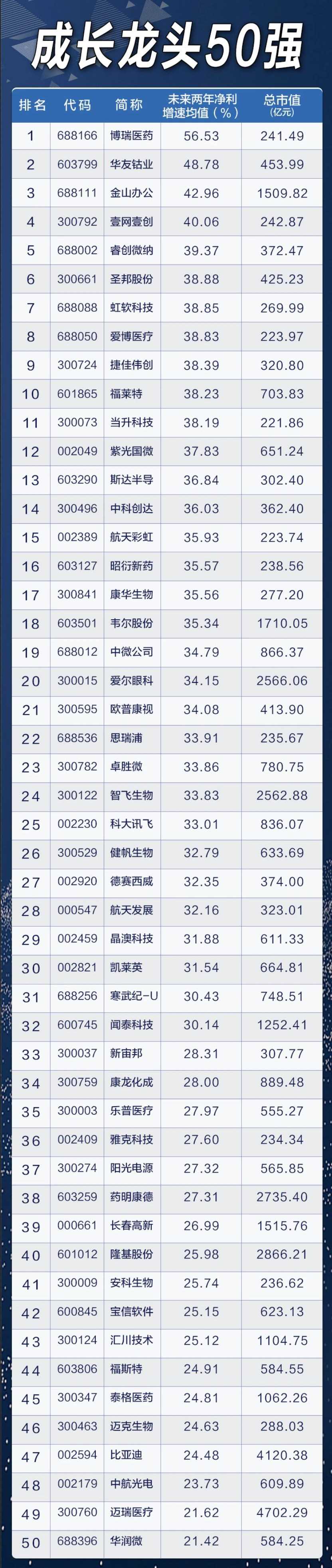 A股成长龙头50强出炉!