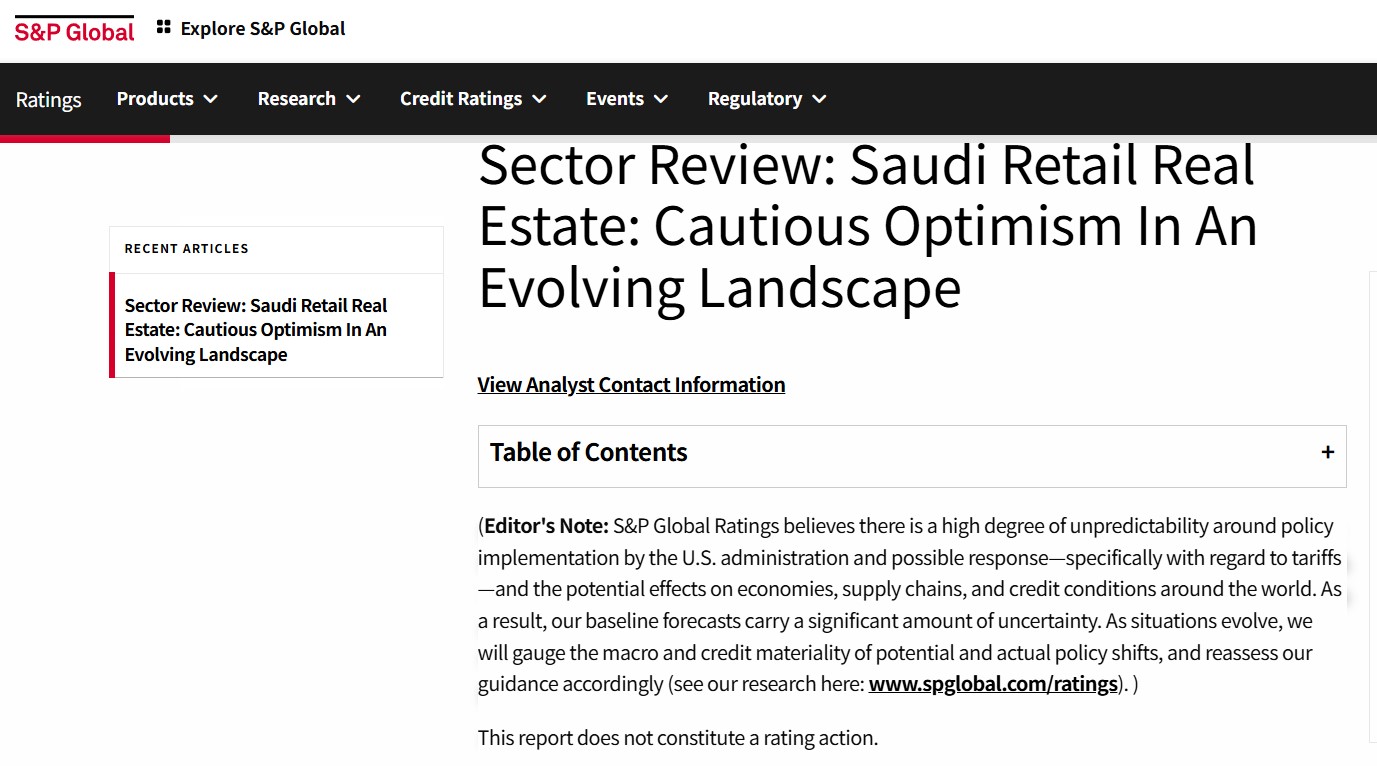 在政府加大基础设施投入、大型项目推进以及国际品牌加速进驻等因素驱动下,沙特的房地产行业呈现增长态势。标普全球在其最新报告中指出,受社会与经济环境变化推动,沙特的零售地产展现出较强韧性。